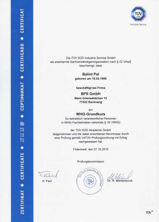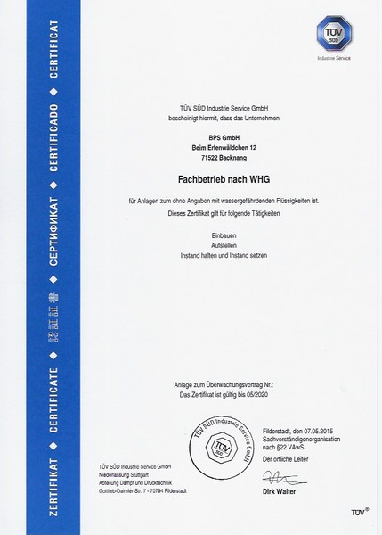 Wir sind Zertifizierte Fachbetrieb nach §19 WHG